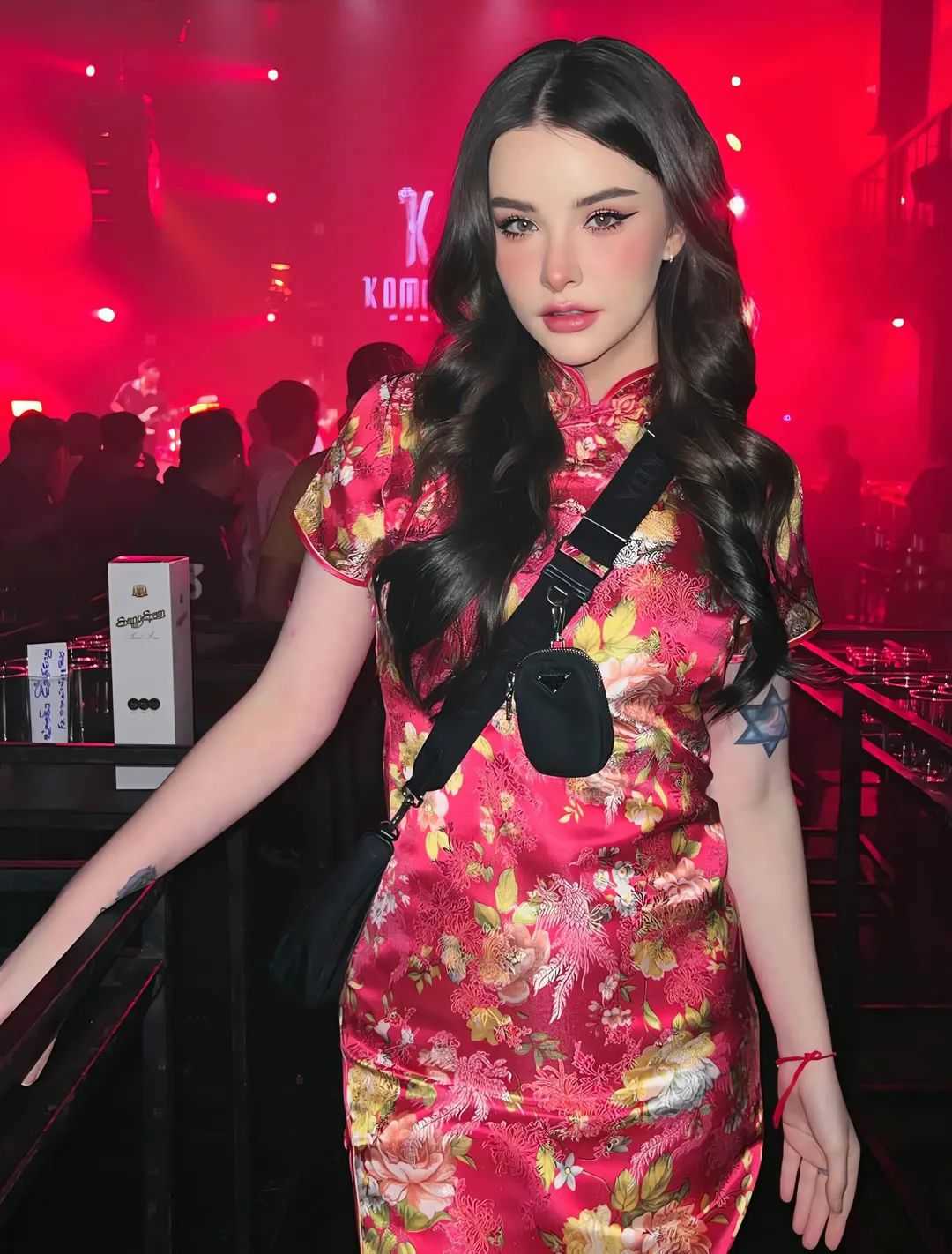 In a grand ballroom with crystal chandeliers hanging from the ceiling, the model waltzes across the floor in a long, silk gown with a voluminous skirt. Her partner’s hand is clasped firmly around her waist, and their synchronized movements create a beautiful display of fluidity. The light from the chandeliers catches the sequins on her dress, making her sparkle with every turn. In another shot, she poses alone, one leg extended gracefully behind her, her arms held in a poised position. The ornate architecture of the ballroom, with its arched windows and intricate moldings, serves as a perfect backdrop for her elegance.